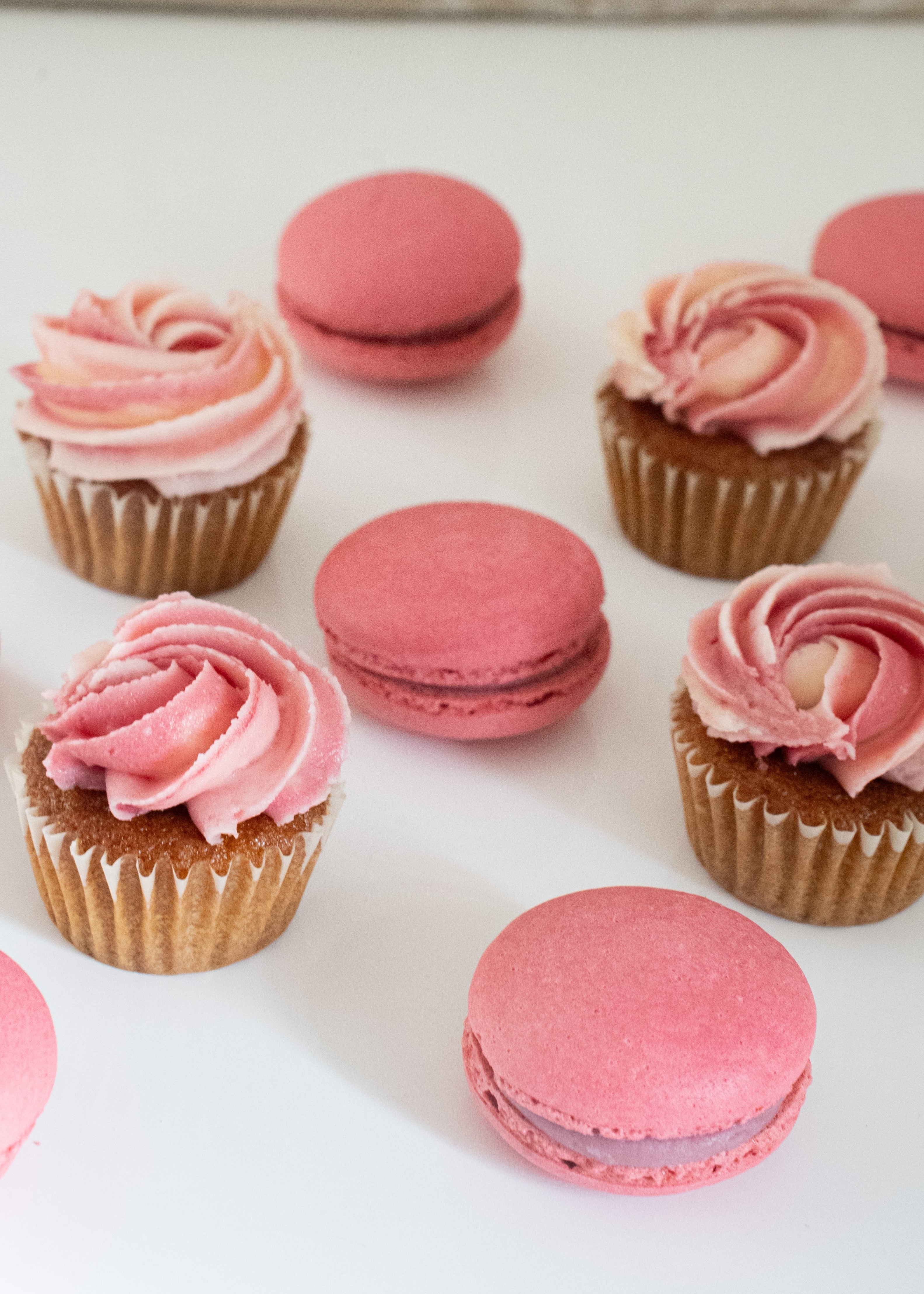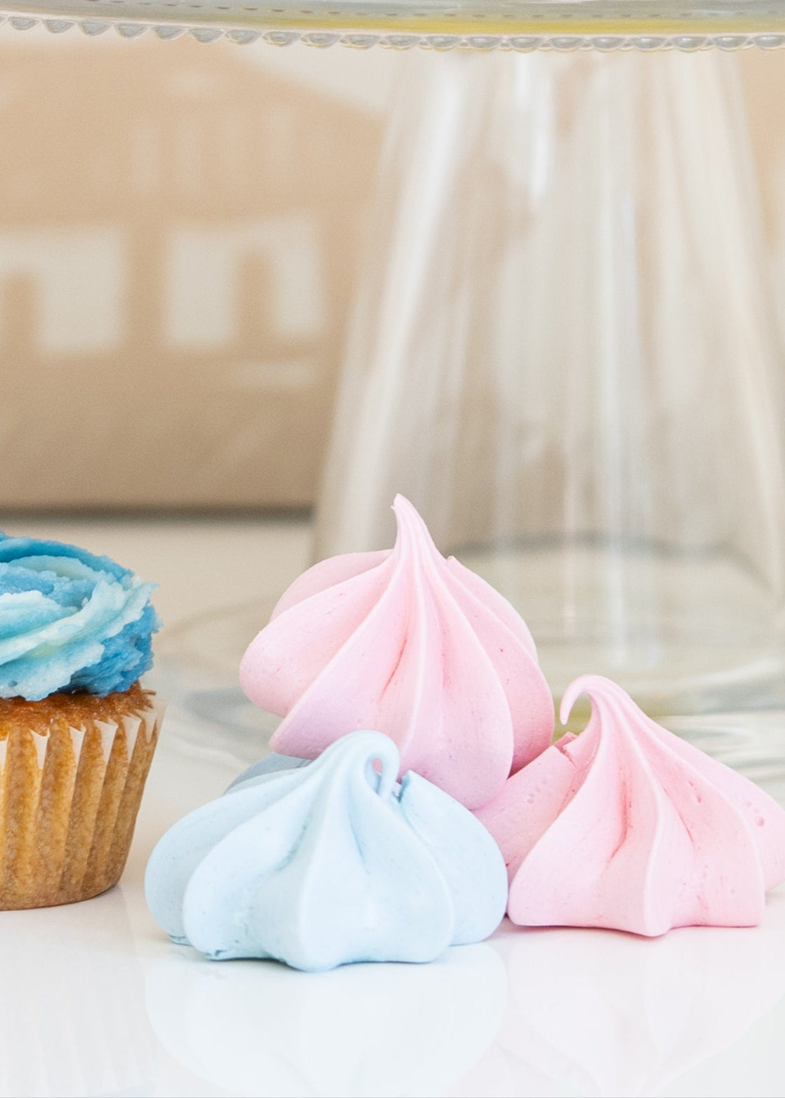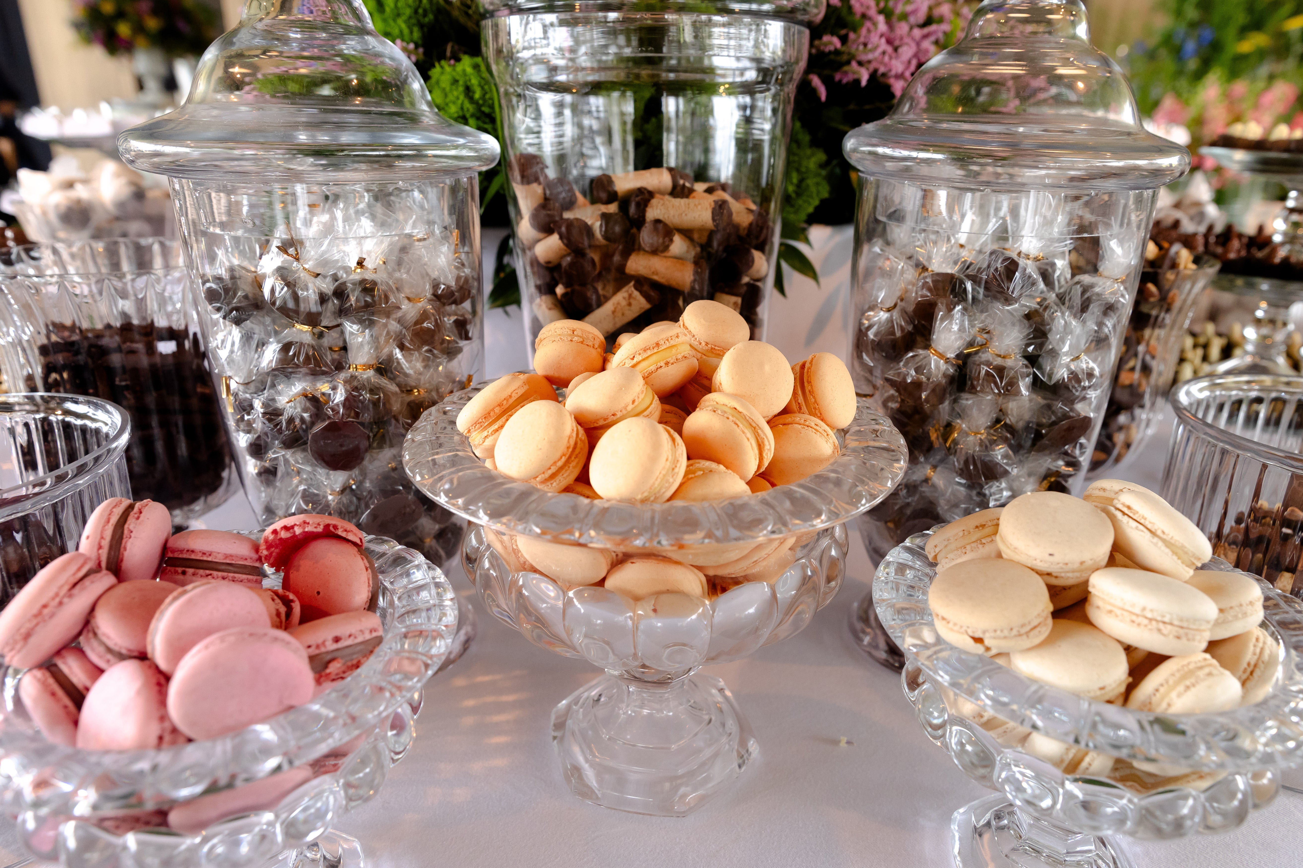 La decoración puede incluir: Flores, macarons, chocolates, merengues y galletas